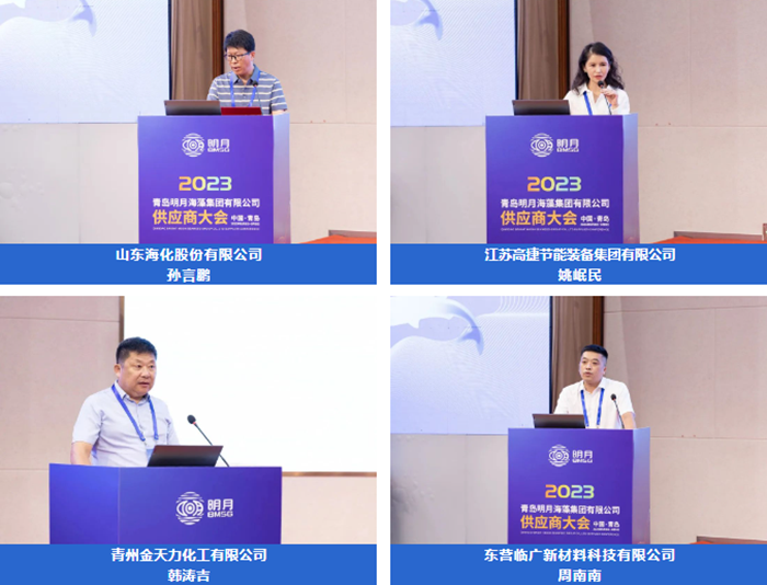 山東海化股份有限公司孫言鵬、江蘇高捷節(jié)能裝備集團(tuán)有限公司姚岷民、青州金天力化工有限公司韓濤吉、東營臨廣新材料科技有限公司周南南幾位供應(yīng)商代表上臺分享“他們和明月的故事”。通過他們的講述,讓大家全方位、多角度地了解了一個充滿情懷與溫度的多彩明月。