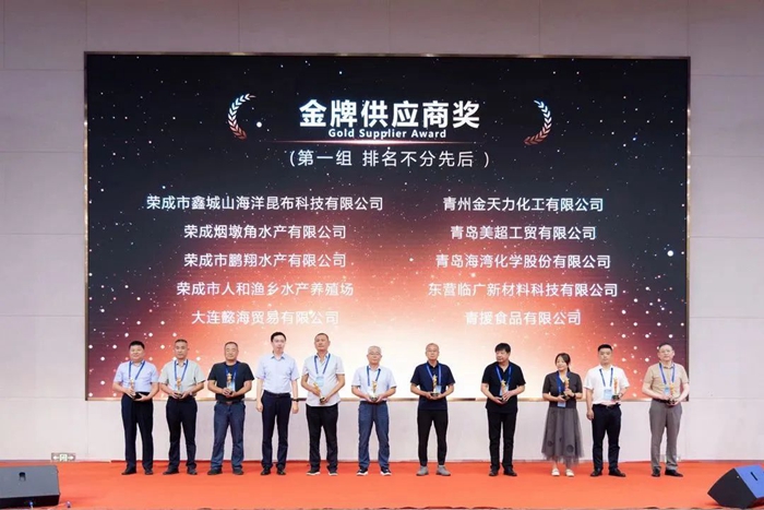 青島明月海藻集團(tuán)總裁劉兆志為“金牌供應(yīng)商獎”獲獎?wù)哳C獎