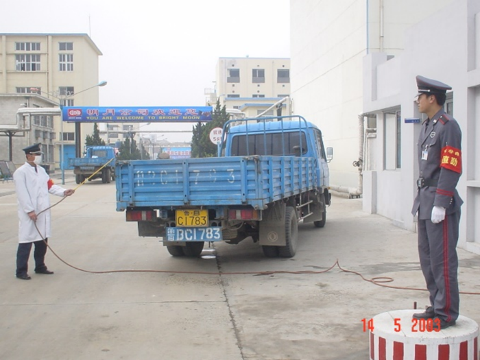 2003.5公司對(duì)出入車(chē)輛進(jìn)行消毒